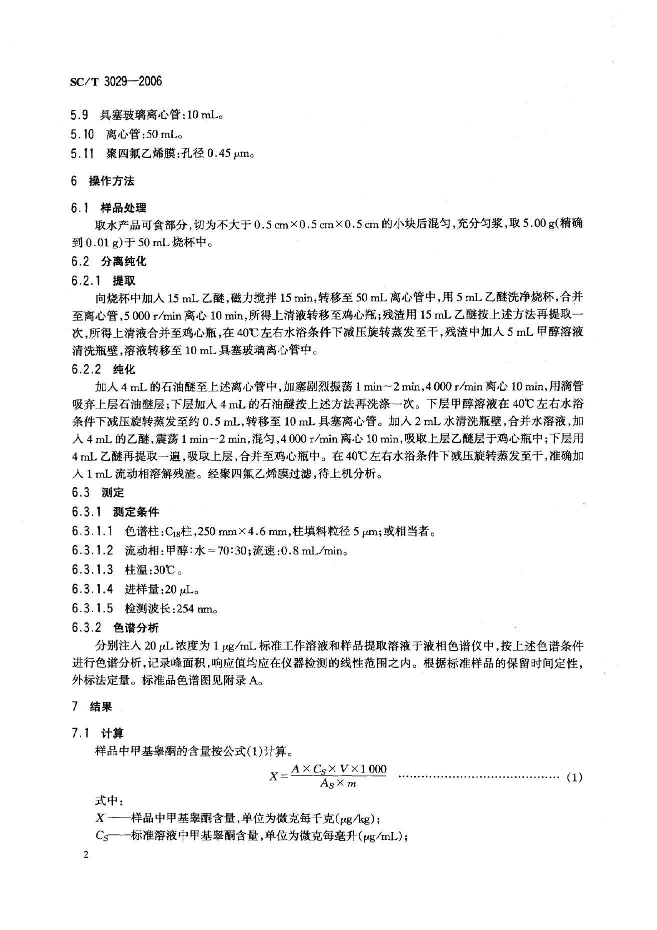 SC/T 3029-2006 水产品中甲基睾酮残留量的测定 液相色谱法