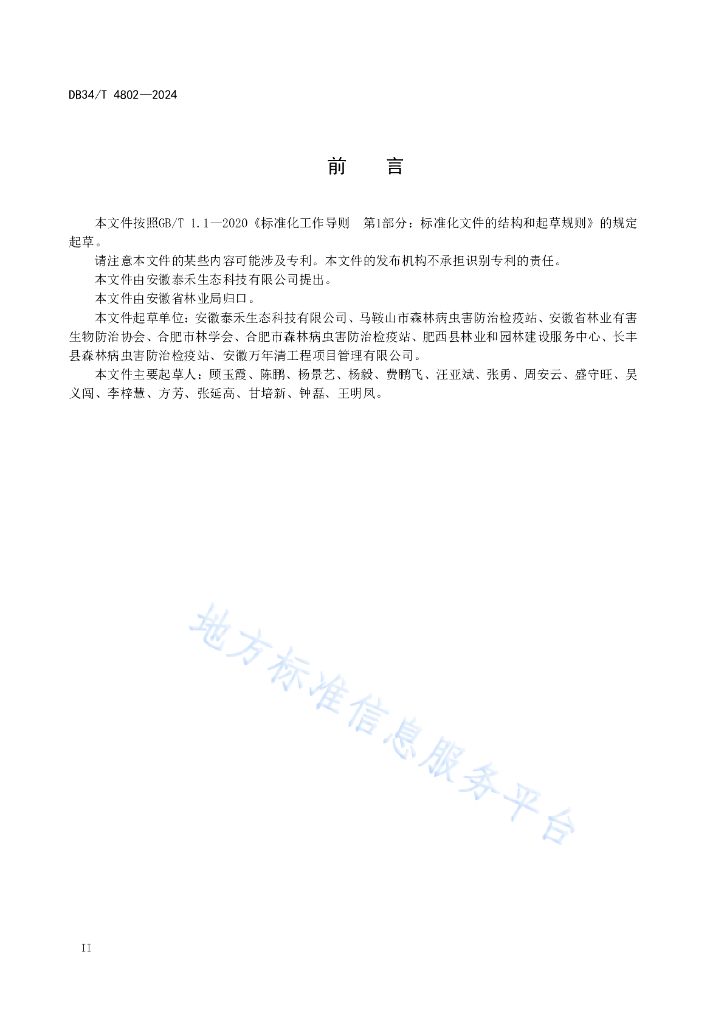 安徽泰禾生态科技有限公司、马鞍山市森林病虫害防治检疫站、安徽省林业有害生物防治协会、合肥市林学会、合肥市森林病虫害防治检疫站、肥西县林业和园林建设服务中心、长丰县森林病虫害防治检疫站、安徽万年清工程项目管理有限公司
