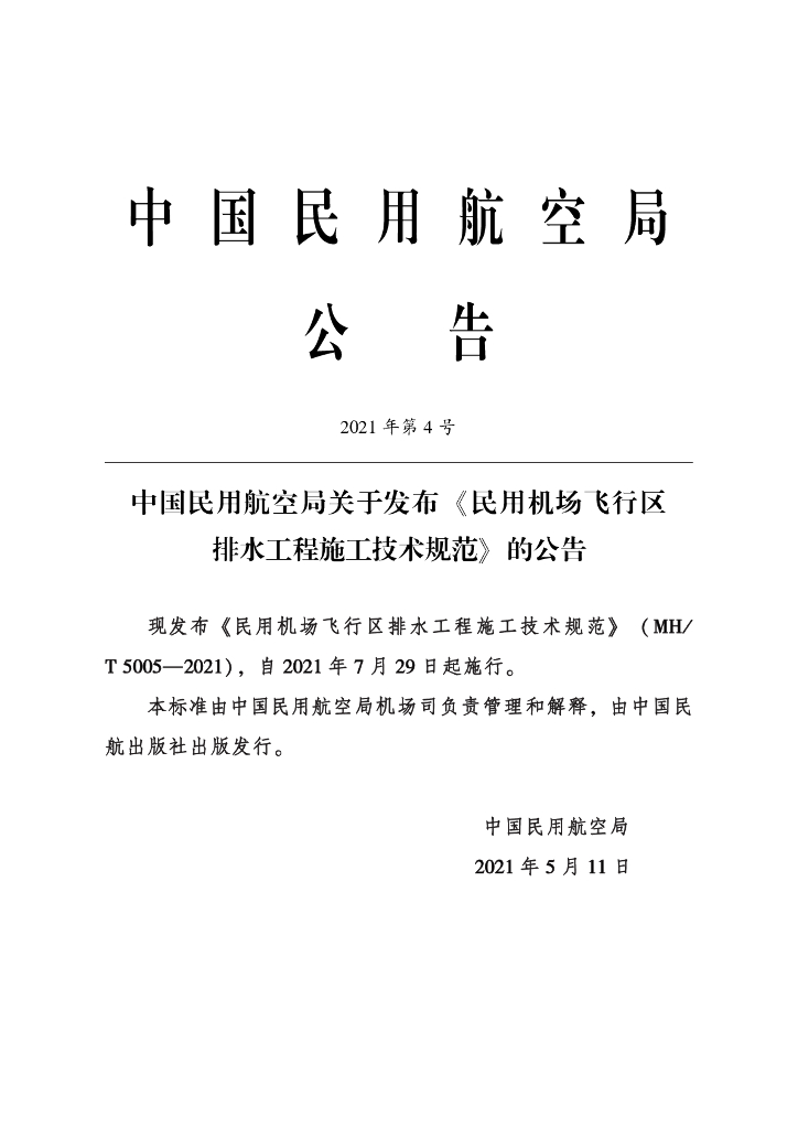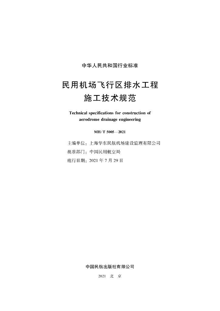MH/T 5005-2021 民用机场飞行区排水工程施工技术规范