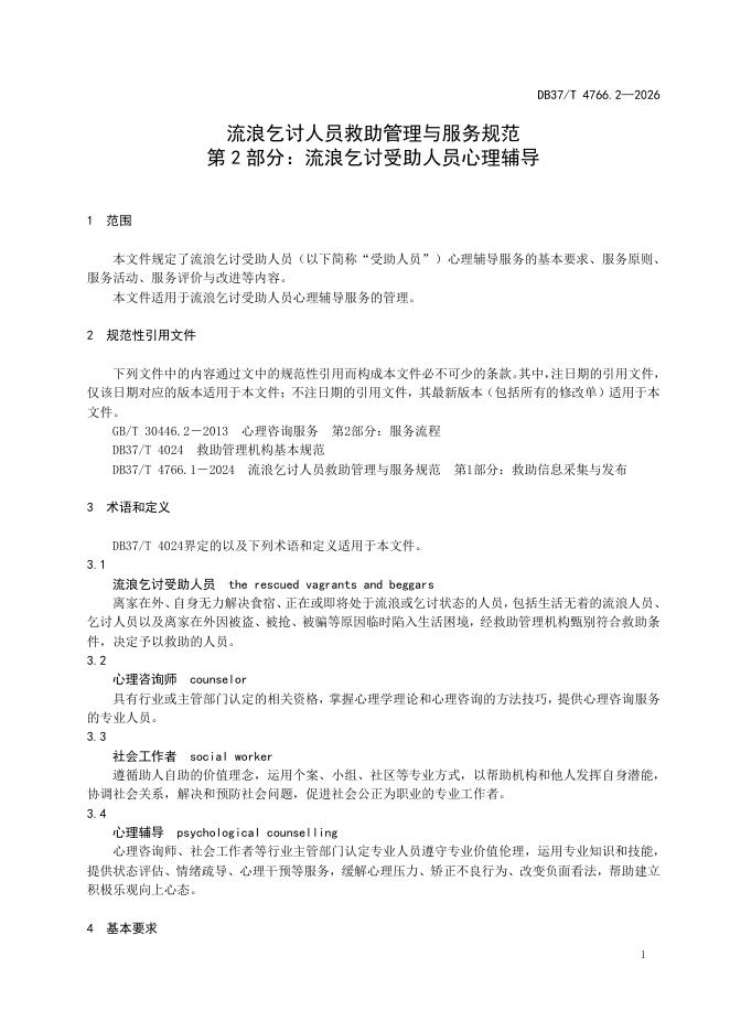 DB37/T 4766.2-2026 流浪乞讨人员救助管理与服务规范 第2部分:流浪乞讨受助人员心理辅导