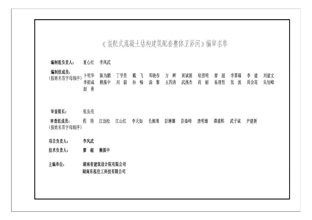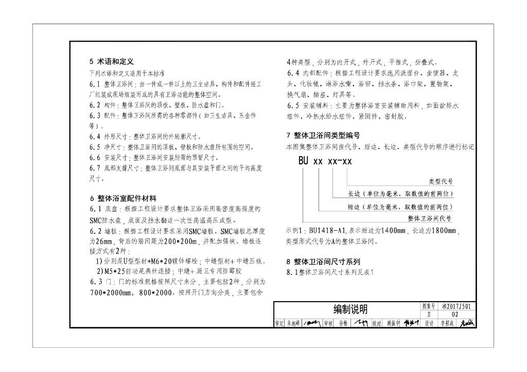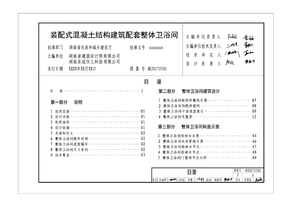 湘2017J501 装配式混凝土结构建筑配套整体卫浴间图集