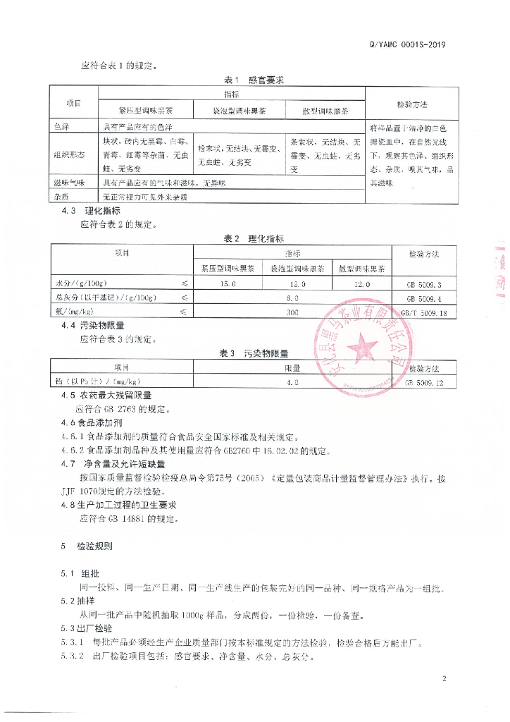 Q/YAMC 0001S-2019 调味黑茶