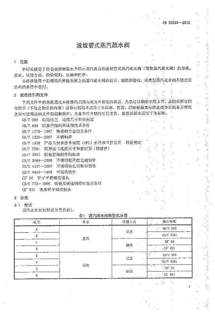 CB 20034-2012 波纹管式蒸汽疏水阀