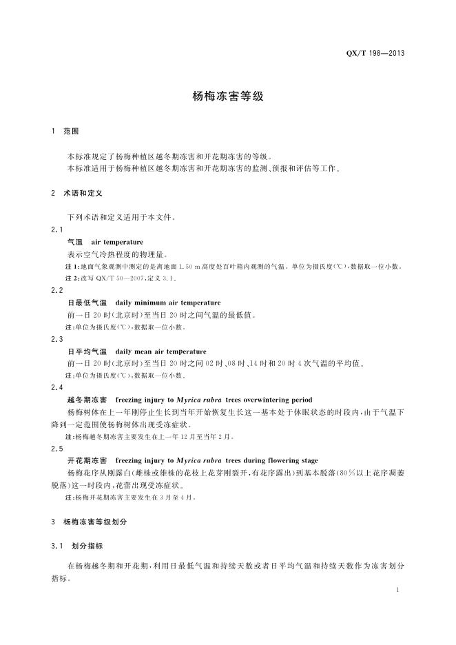 QX/T 198-2013 杨梅冻害等级