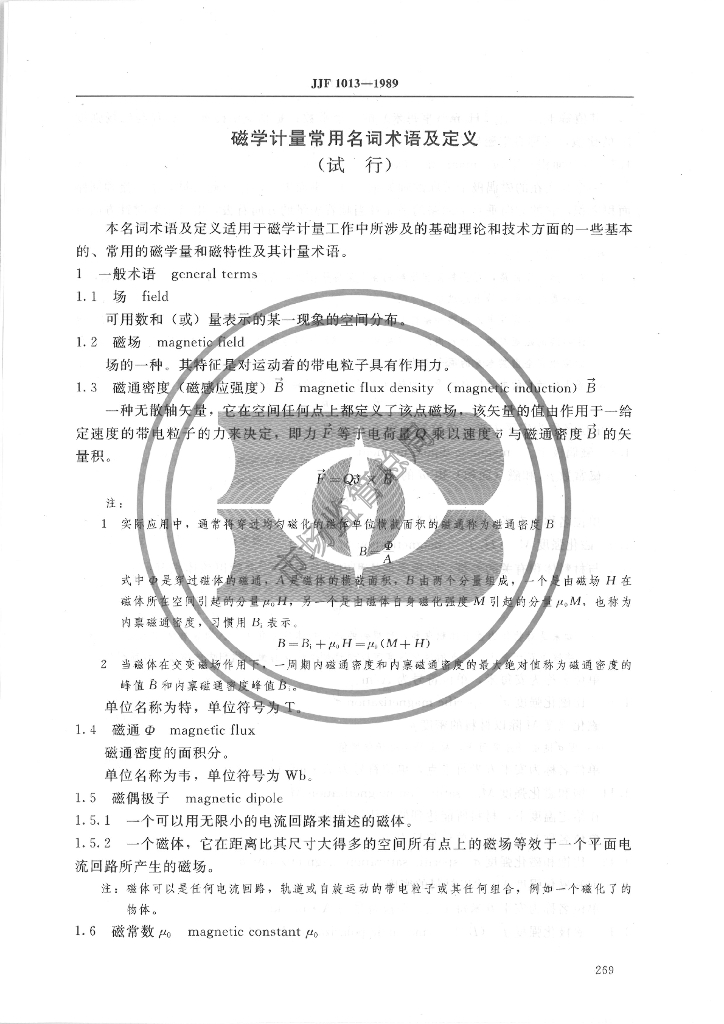 JJF 1013-1989 磁学计量常用名词术语及定义(试行)