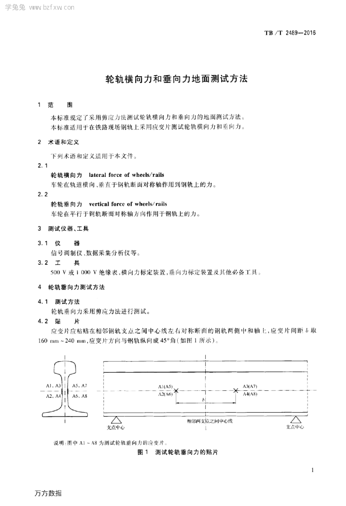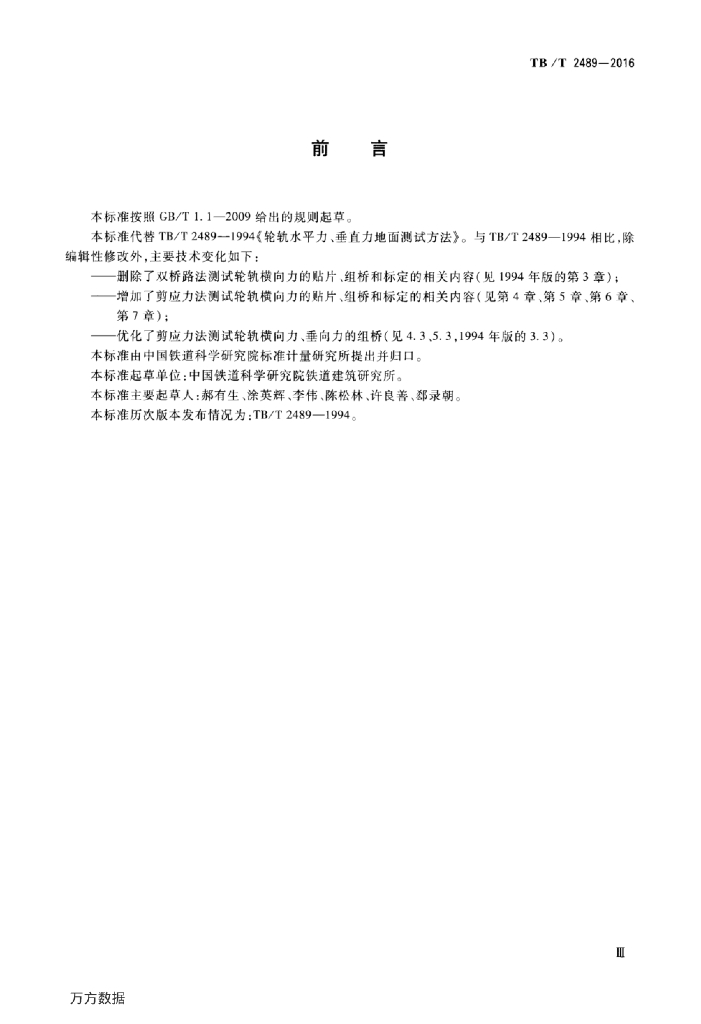 TB/T 2489-2016 轮轨横向力和垂向力地面测试方法