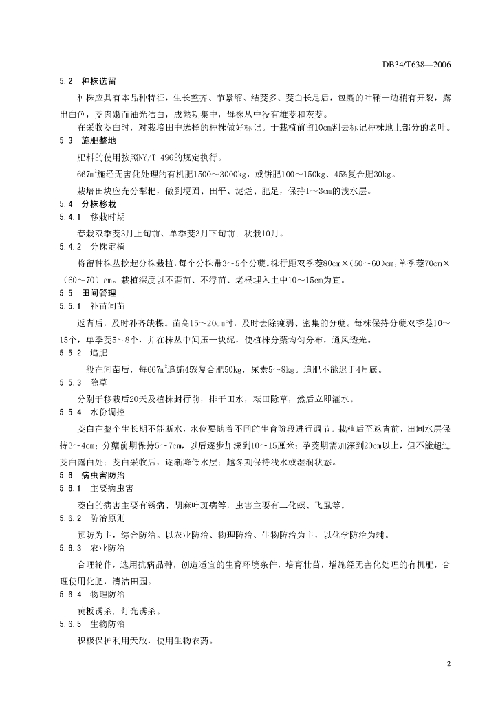 DB34/T 638-2006 高山茭白生产技术规程