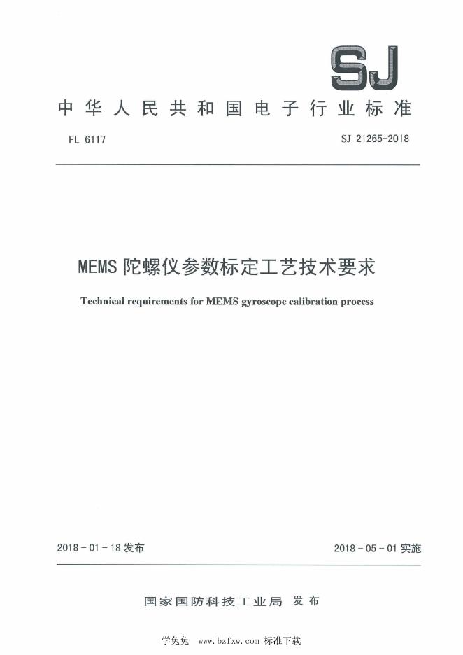 SJ 21265-2018 MEMS 陀螺仪参数标定工艺技术要求