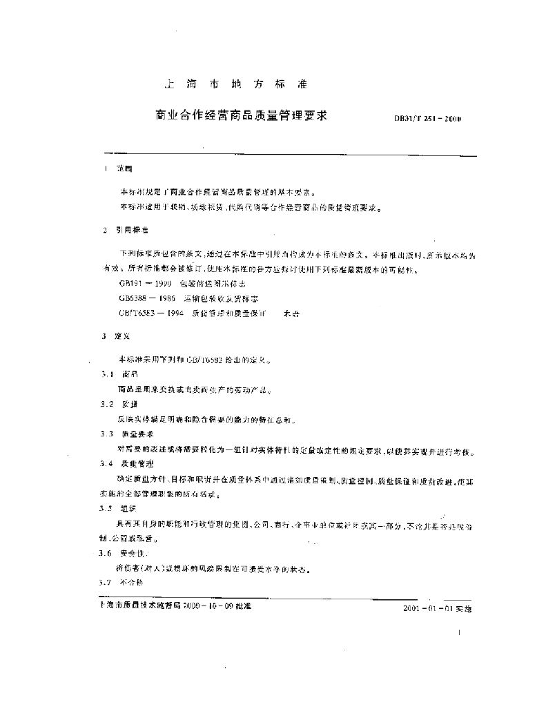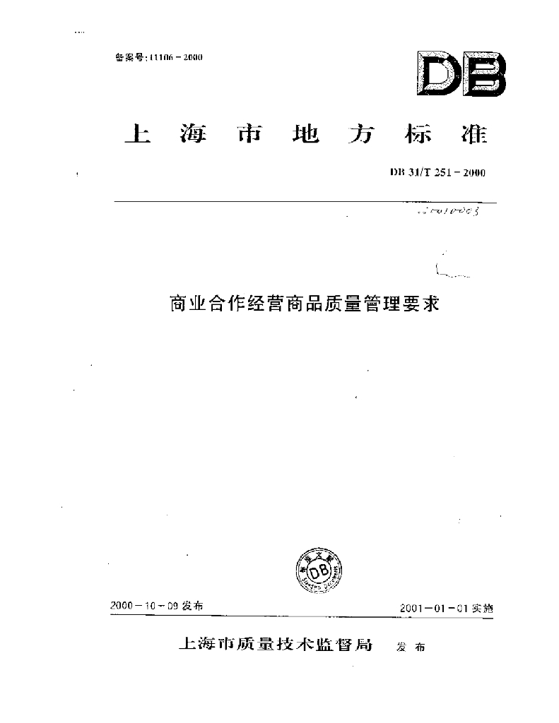 DB31/T 251-2000 商业合作经营商品质量管理要求