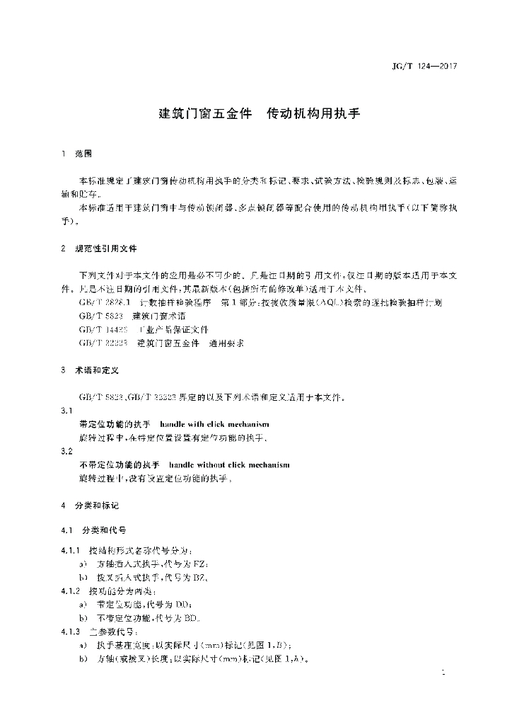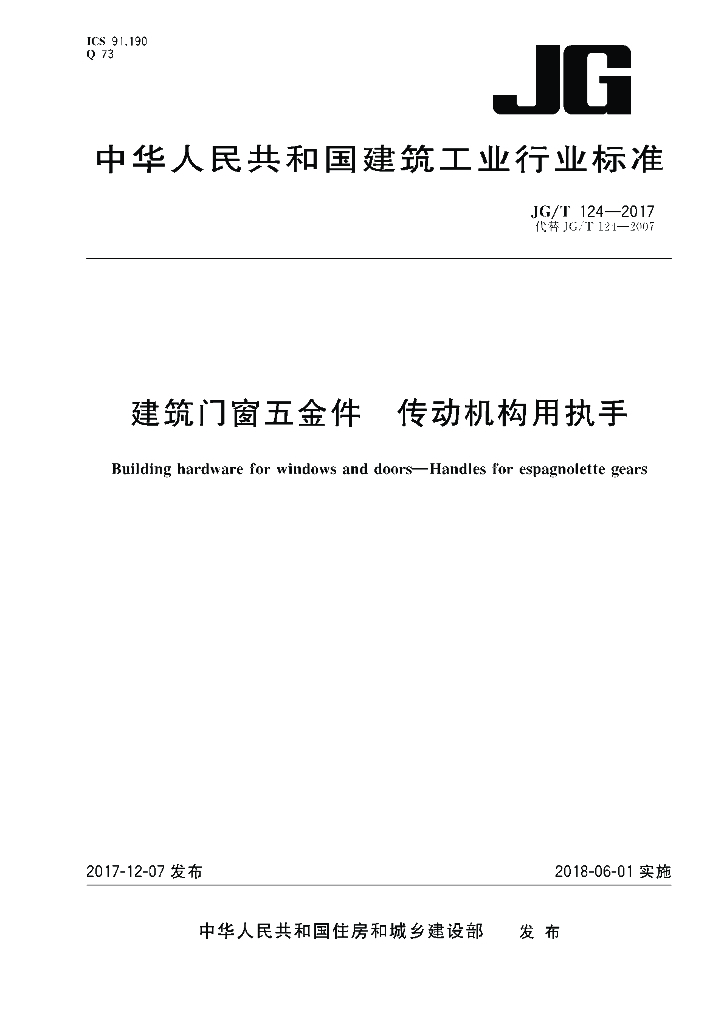 JG/T 124-2017 建筑门窗五金件 传动机构用执手