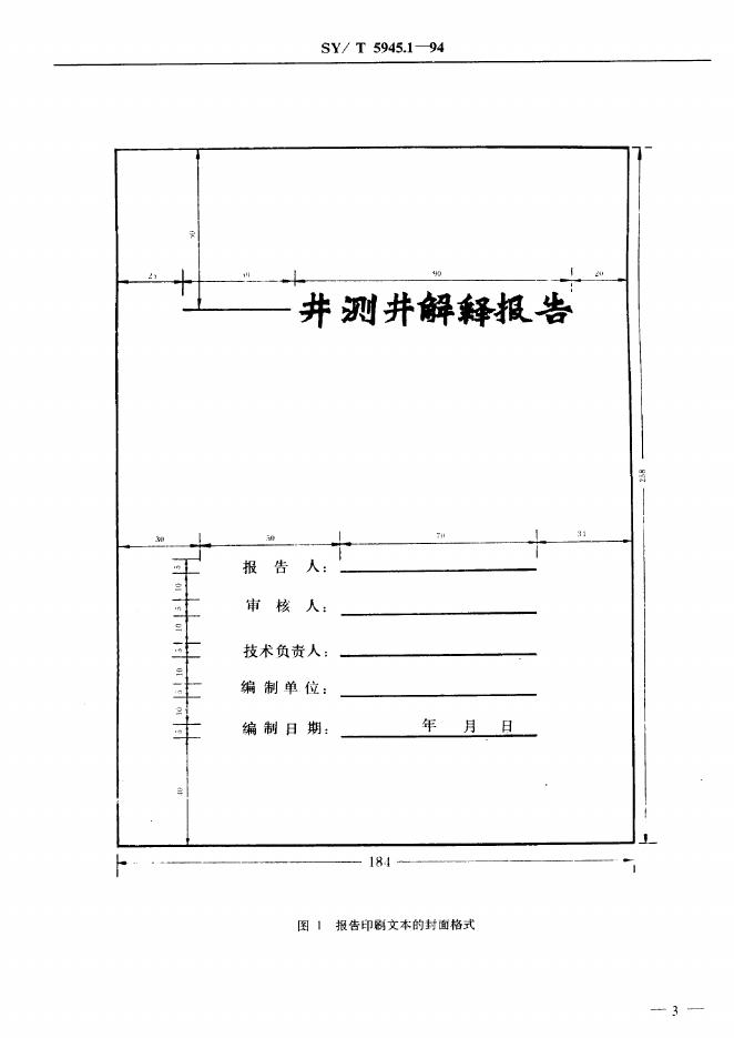 SY/T 5945.1-1994 测井解释报告编写规范 探井解释报告编写