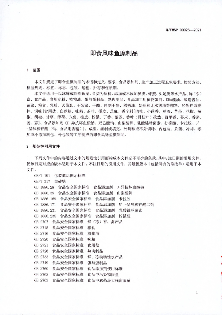 Q/FMSP 0002S-2021 即食风味鱼糜制品