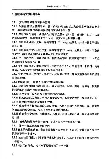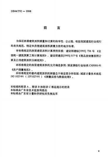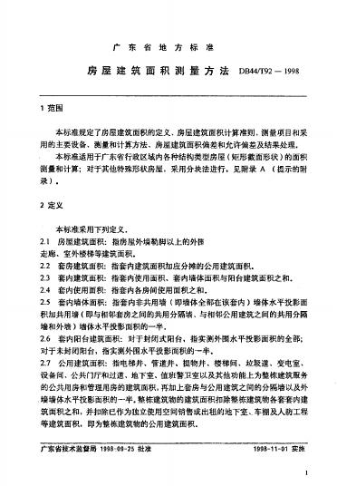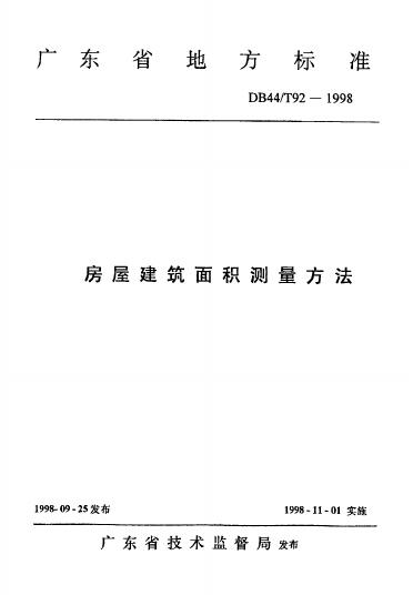 DB44/ 92-1998 房屋建筑面积测量方法