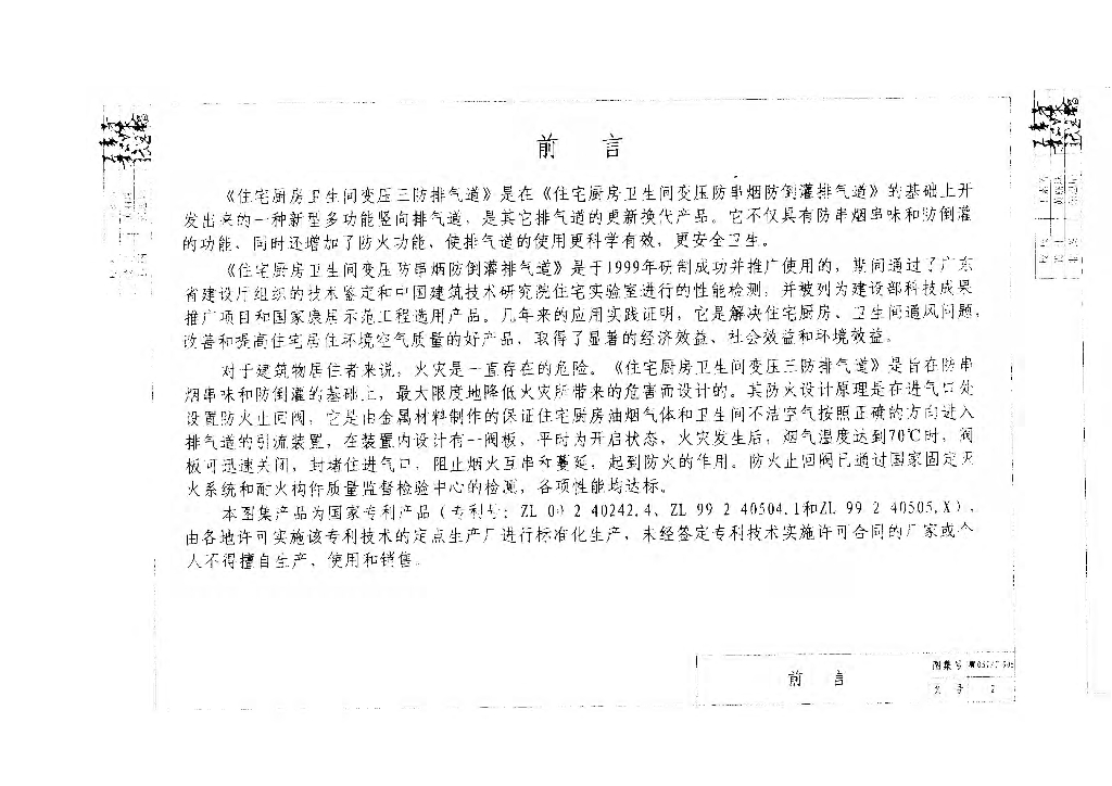 粤05J/T-906 住宅厨房卫生间变压三防排气道图集