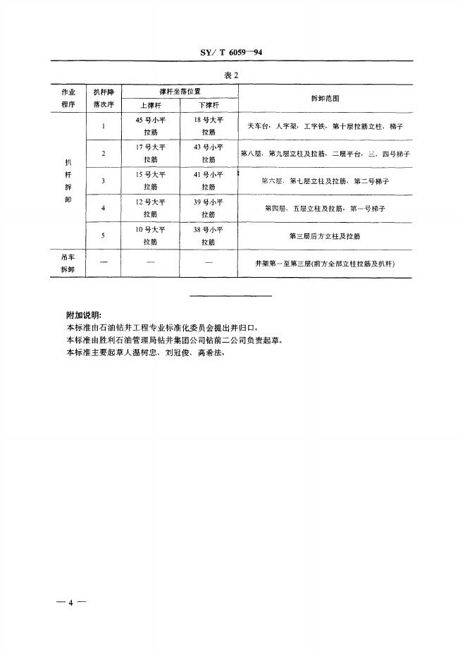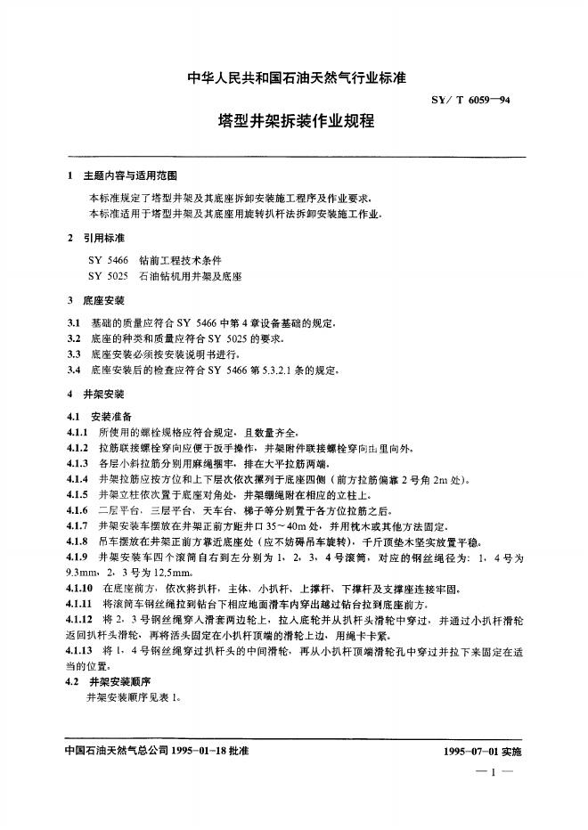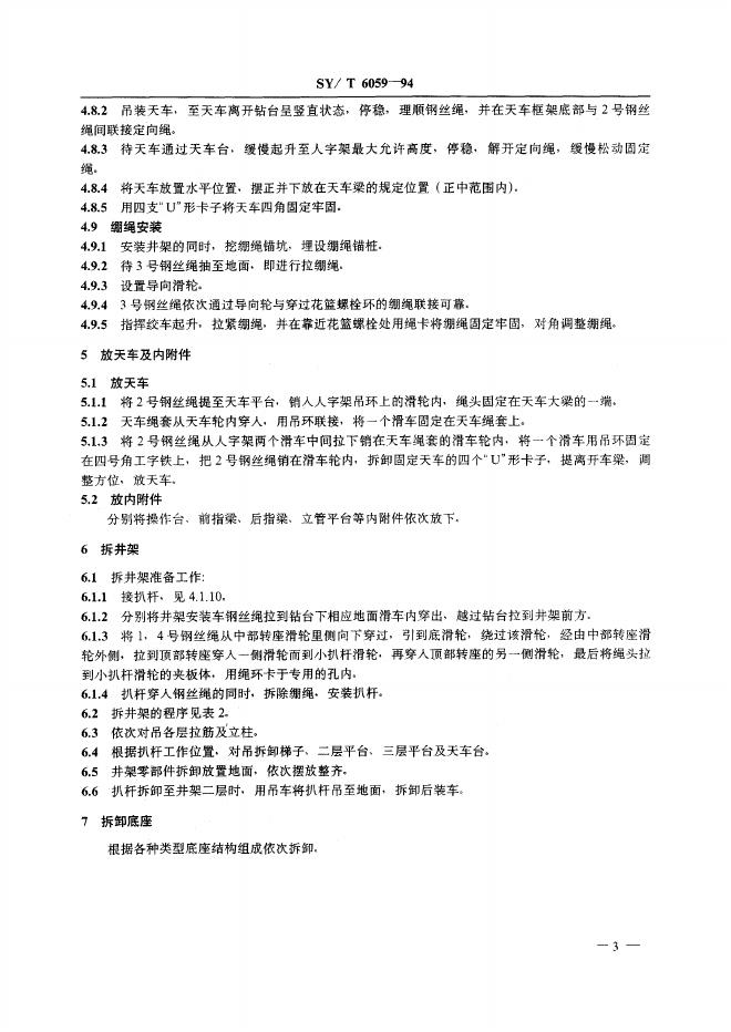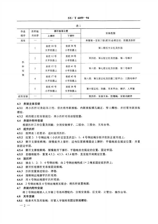 SY/T 6059-1994 塔型井架拆装作业规程