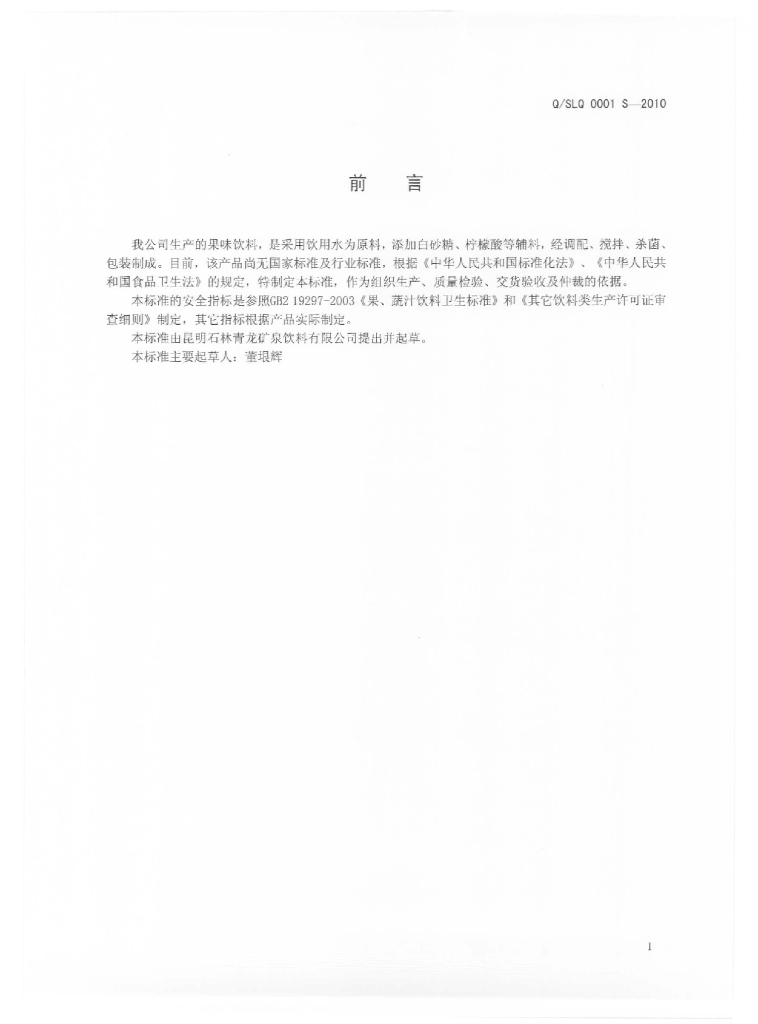 Q/SLQ 0001S-2010 果味饮料