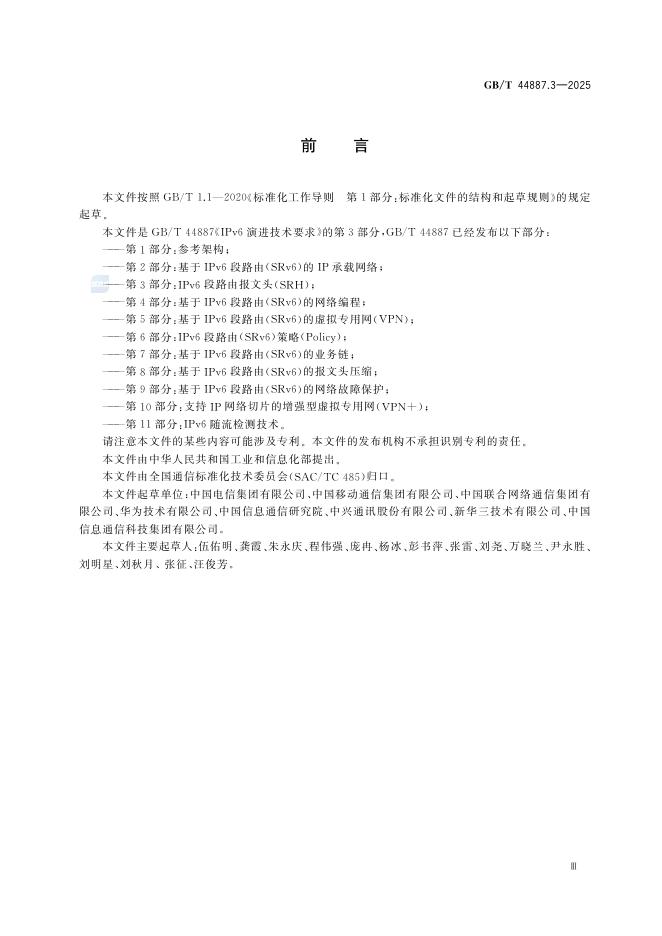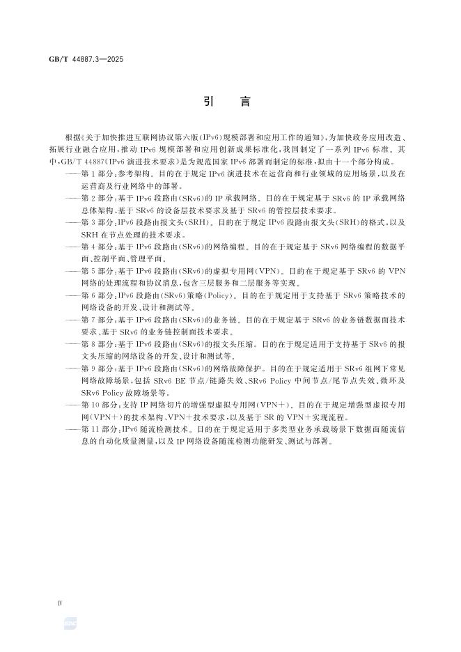 GB/T 44887.3-2025 IPv6 演进技术要求 第3部分:IPv6段路由报文头(SRH)