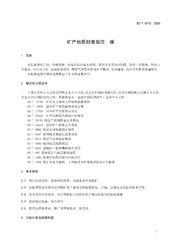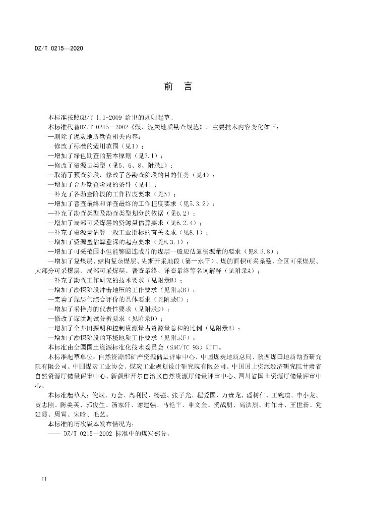 DZ/T 0215-2020 矿产地质勘查规范 煤