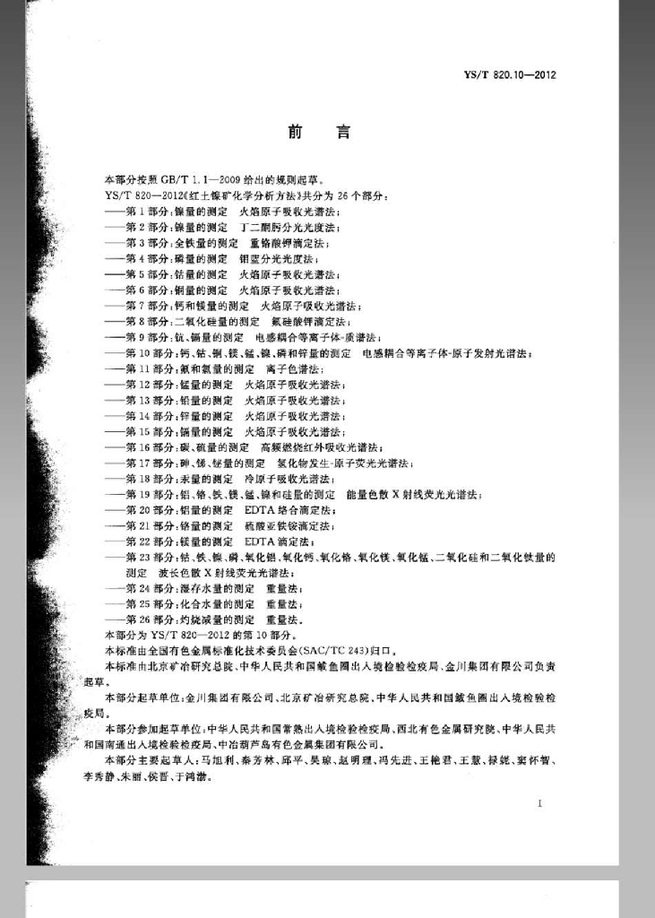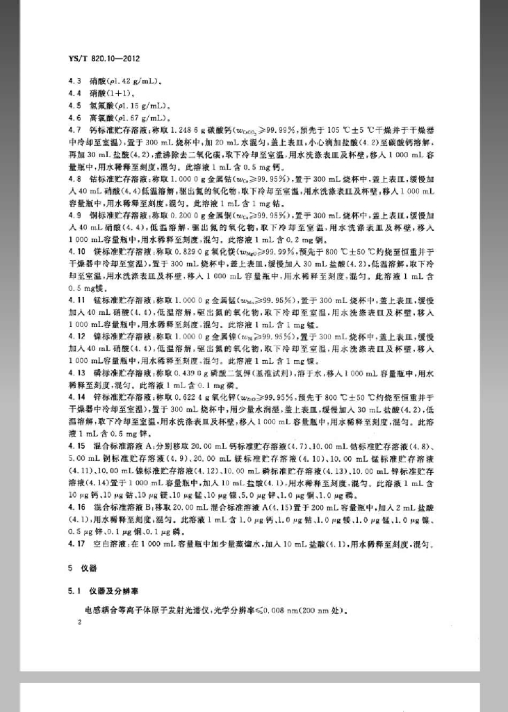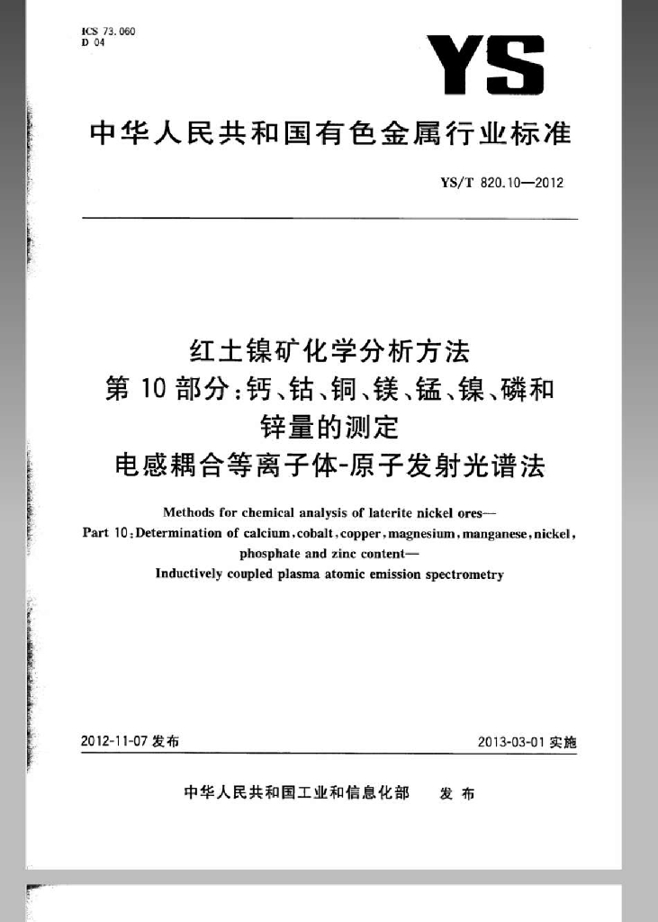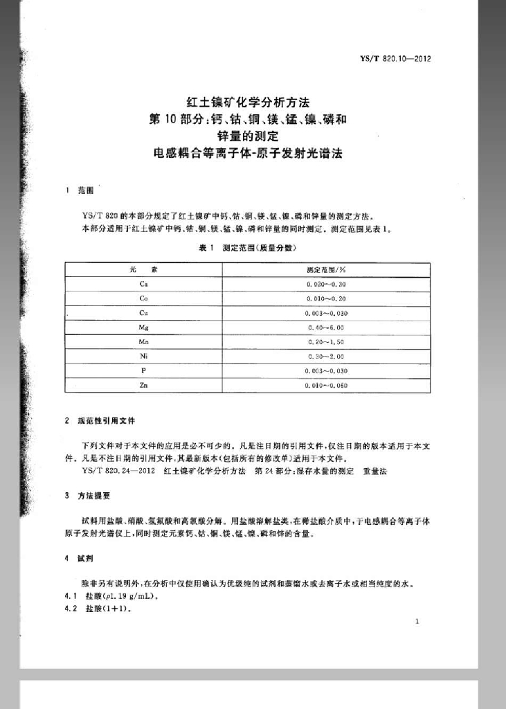 YS/T 820.10-2012 红土镍矿化学分析方法 第10部分:钙、钴、铜、镁、锰、镍、磷和锌量的测定 电感耦合等离子体-原子发射光谱法
