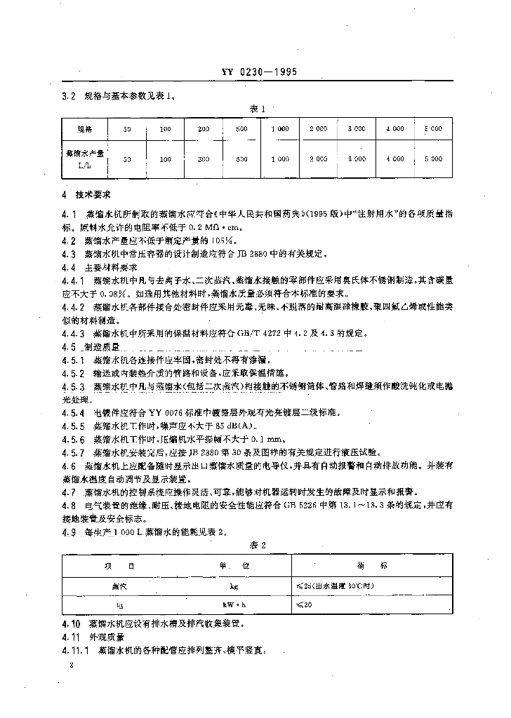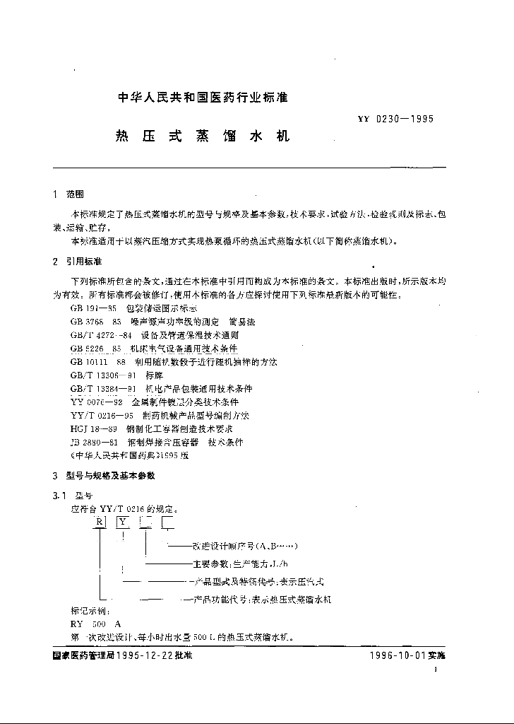 YY 0230-1995 热压式蒸馏水机