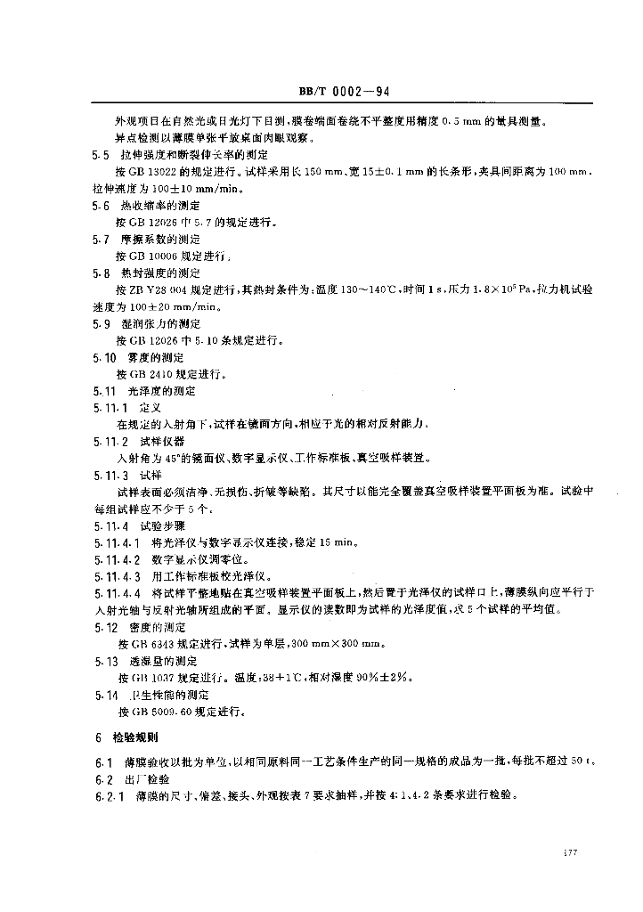 BB/T 0002-1994 双向拉伸聚丙烯珠光薄膜