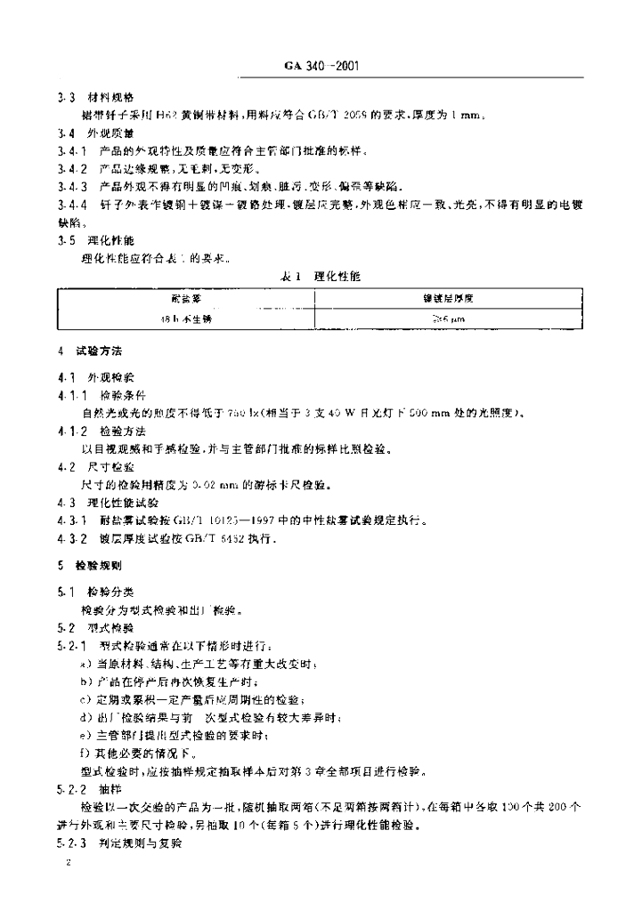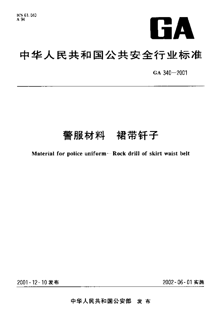 GA 340-2001 警服材料裙带钎子