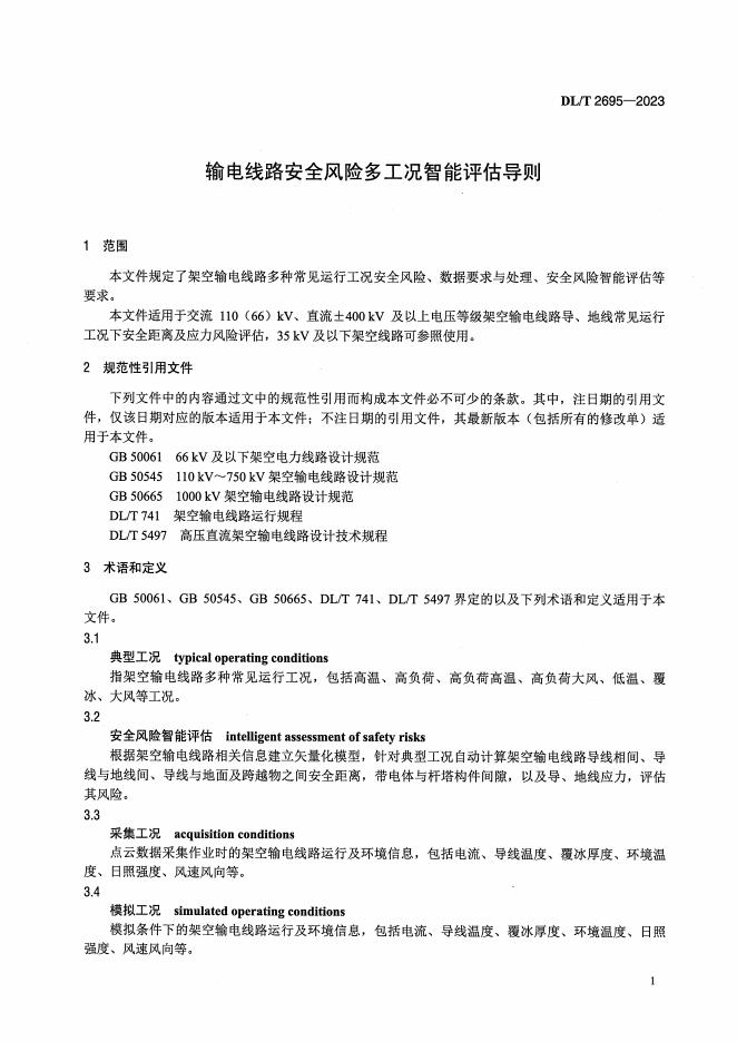 DL/T 2695-2023 输电线路安全风险多工况智能评估导则