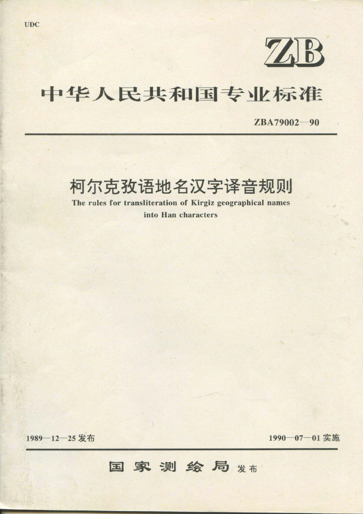CH/T 4012-1999 柯尔克孜语地名汉字译音规则