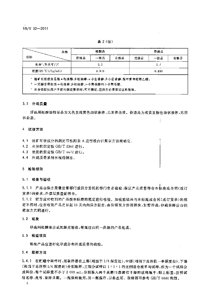 YS/T 32-2011 浮选用松醇油