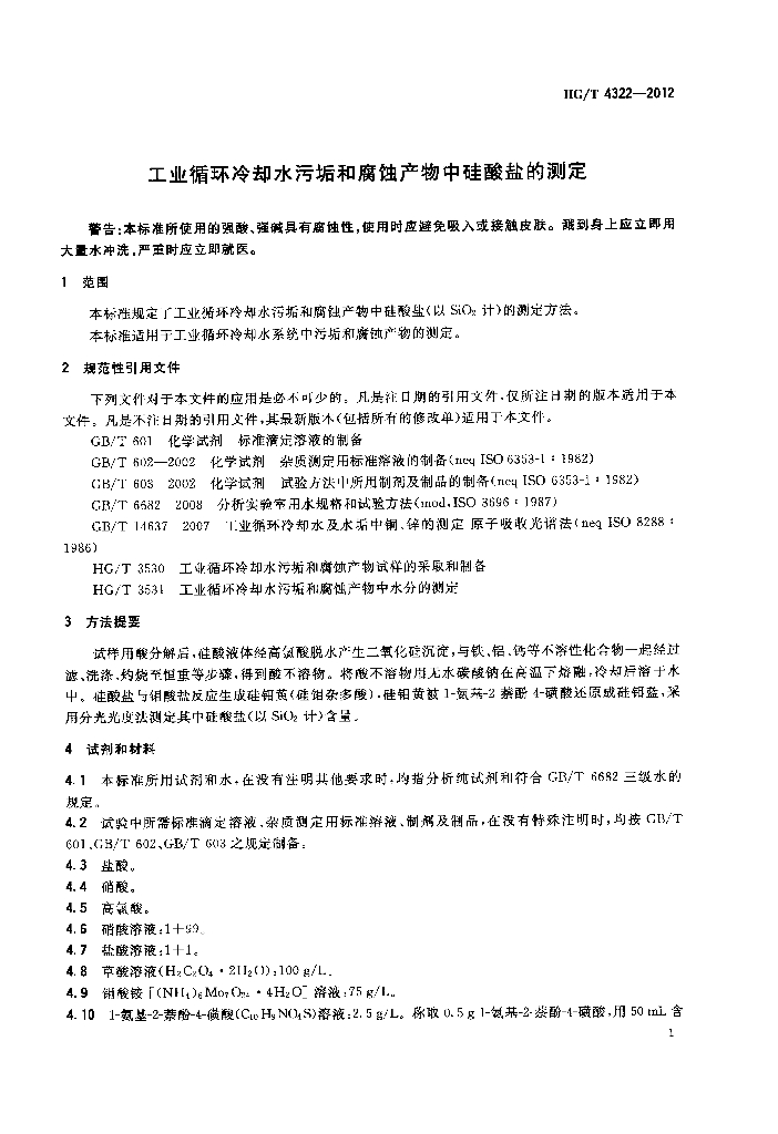 HG/T 4322-2012 工业循环冷却水污垢和腐蚀产物中硅酸盐的测定