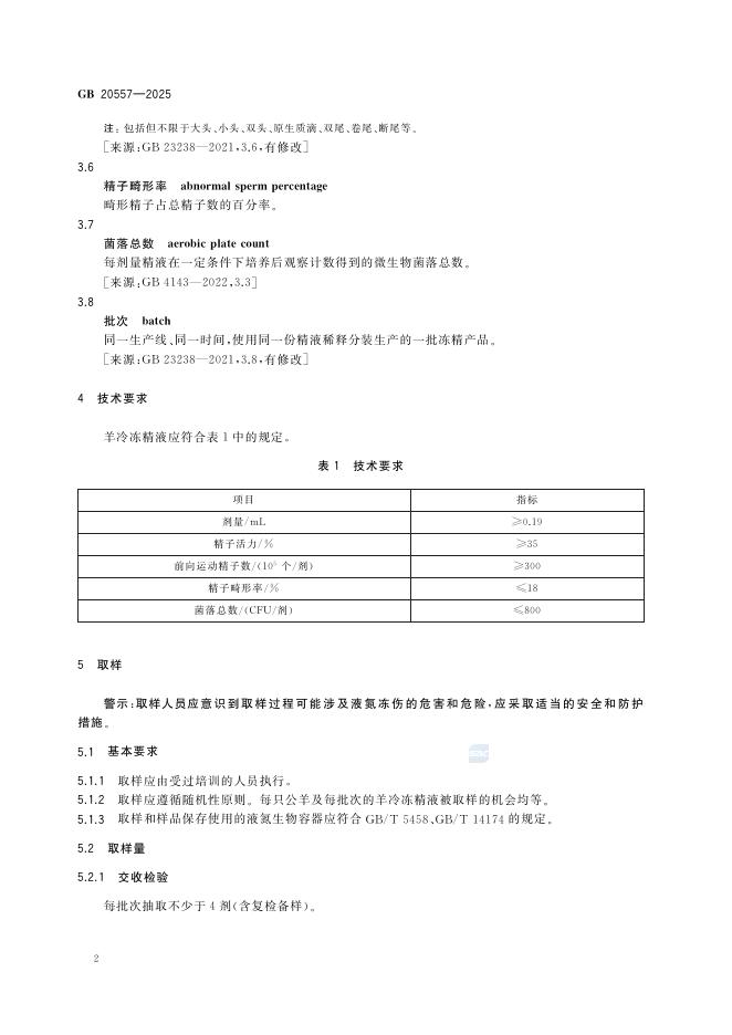 GB 20557-2025 羊冷冻精液