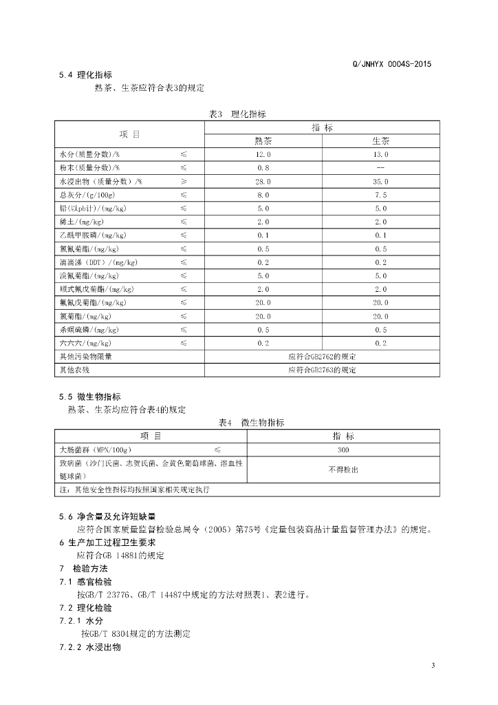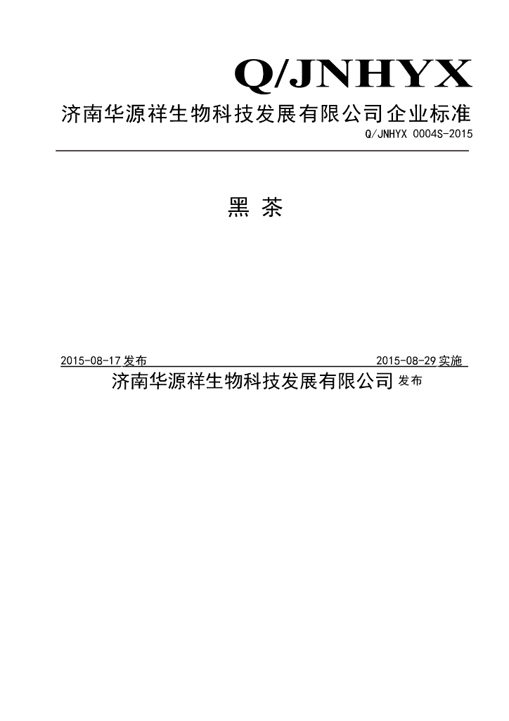 Q/JNHYX 0004S-2015 济南华源祥生物科技发展有限公司 黑茶