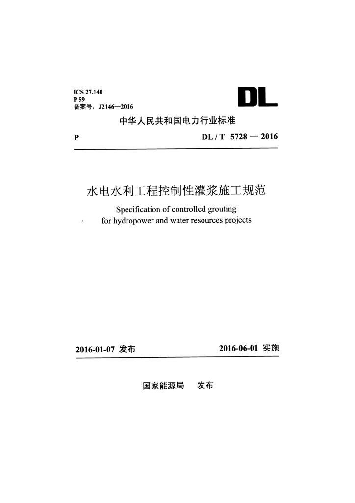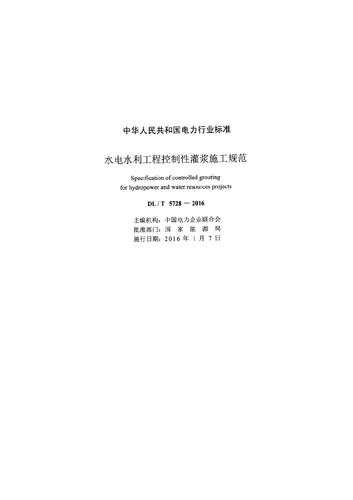 DL/T 5728-2016 水电水利工程控制性灌浆施工规范
