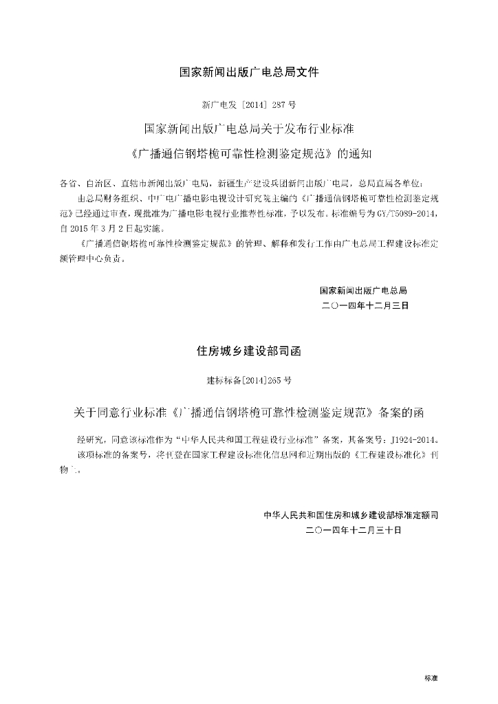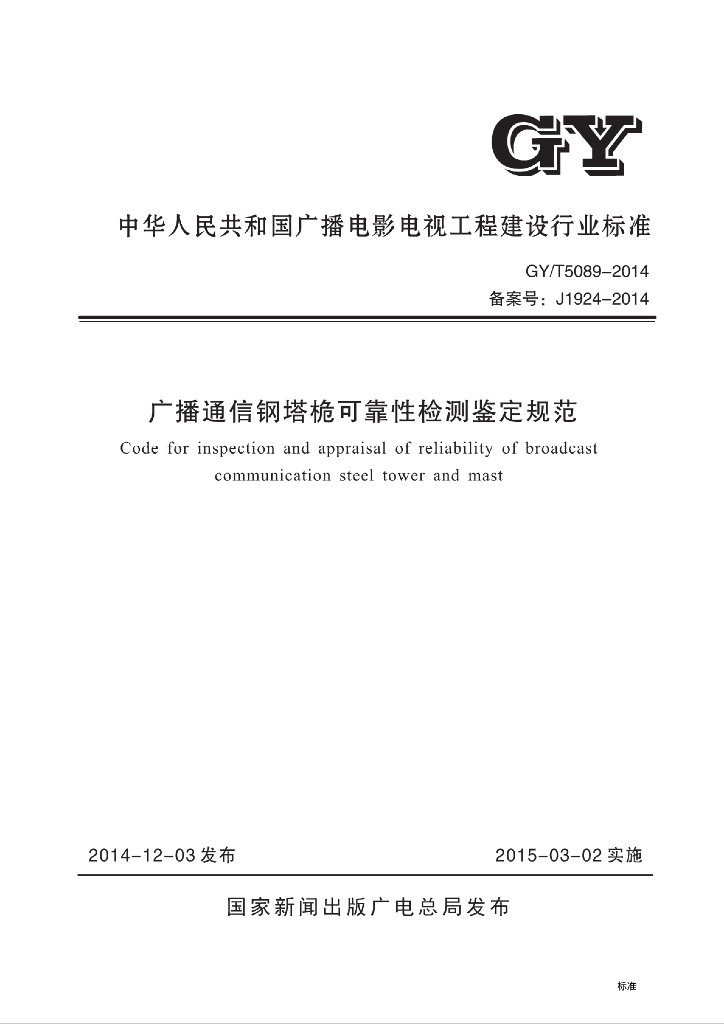GY/T 5089-2014 广播通信钢塔桅可靠性检测鉴定规范