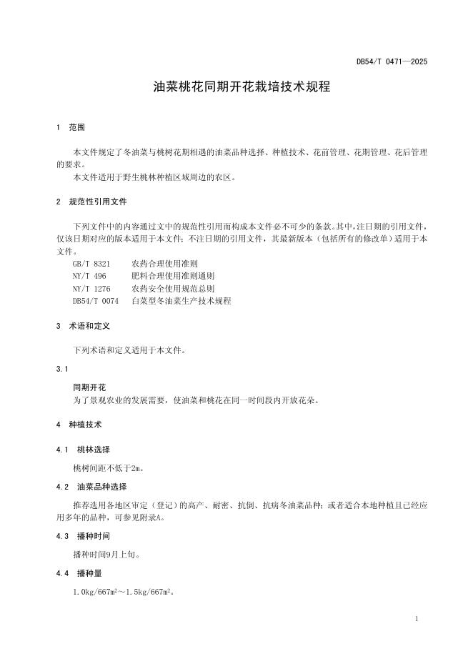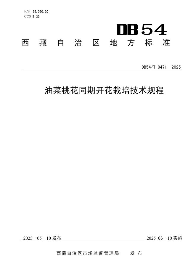 DB54/T 0471-2025 油菜桃花同期开花栽培技术规程