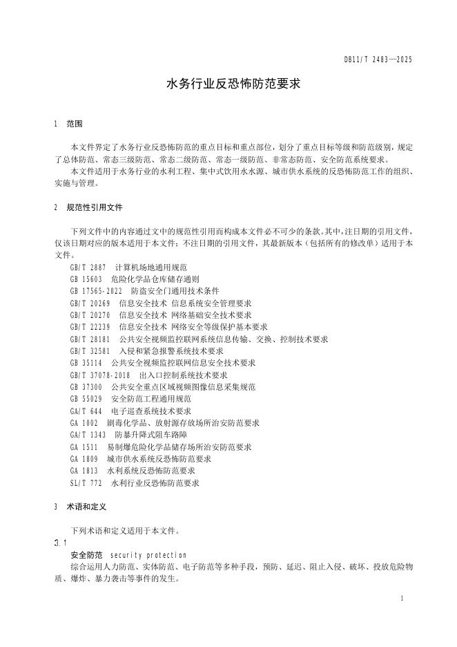 DB11/T 2483-2025 水务行业反恐怖防范要求