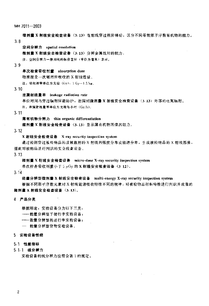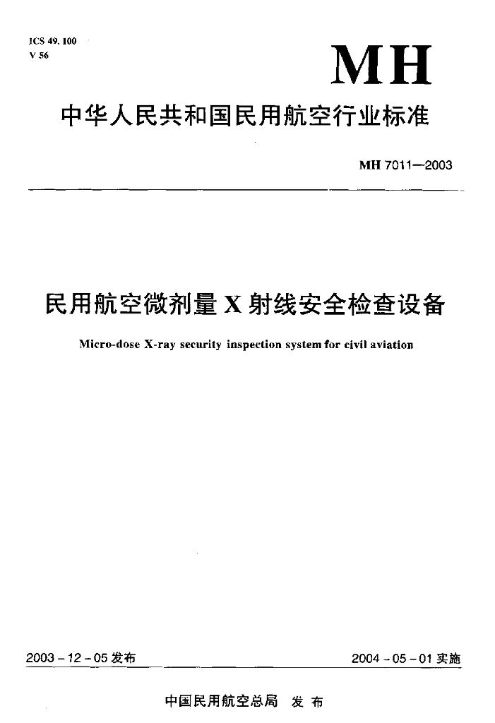 MH 7011-2003 民用航空微剂量X射线安全检查设备