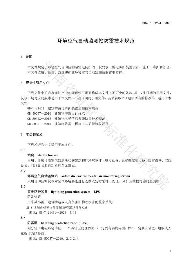 DB43/T 3294-2025 环境空气自动监测站防雷技术规范