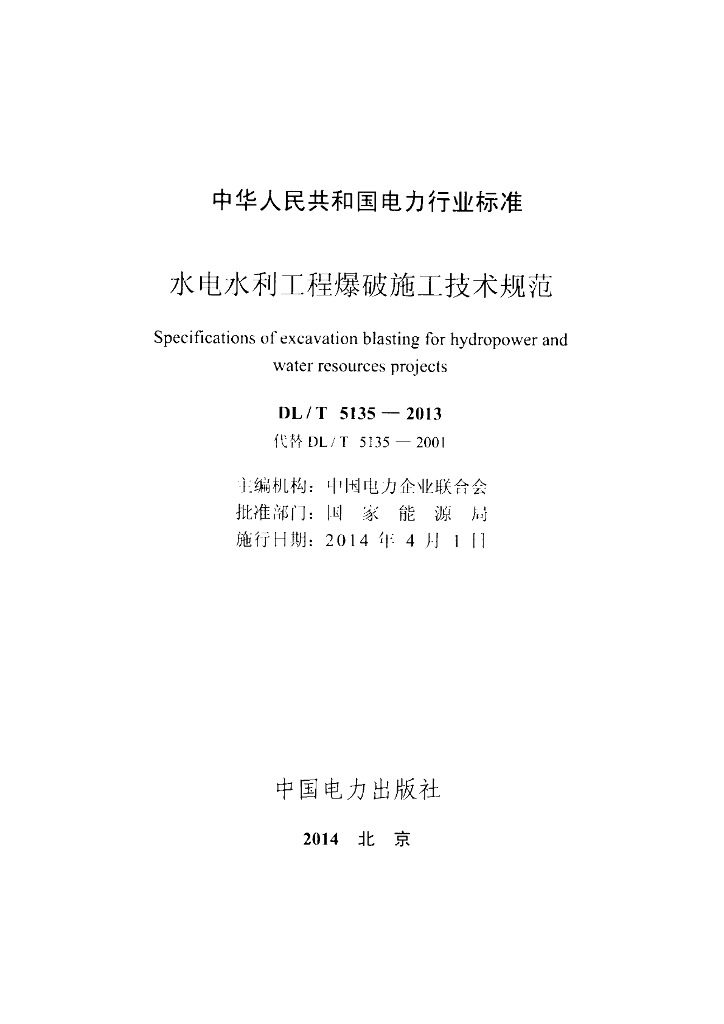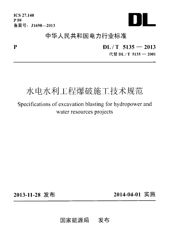 DL/T 5135-2013 水电水利工程爆破施工技术规范