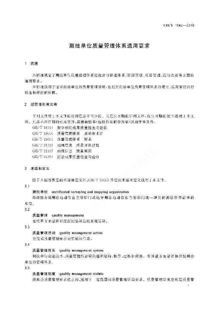 CH/T 1042-2018 测绘单位质量管理体系通用要求