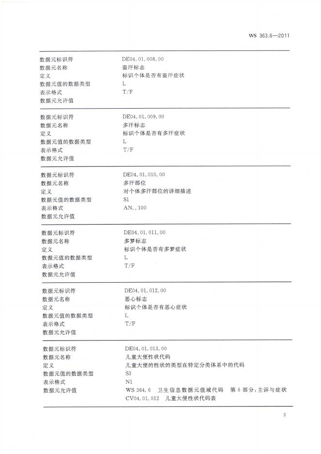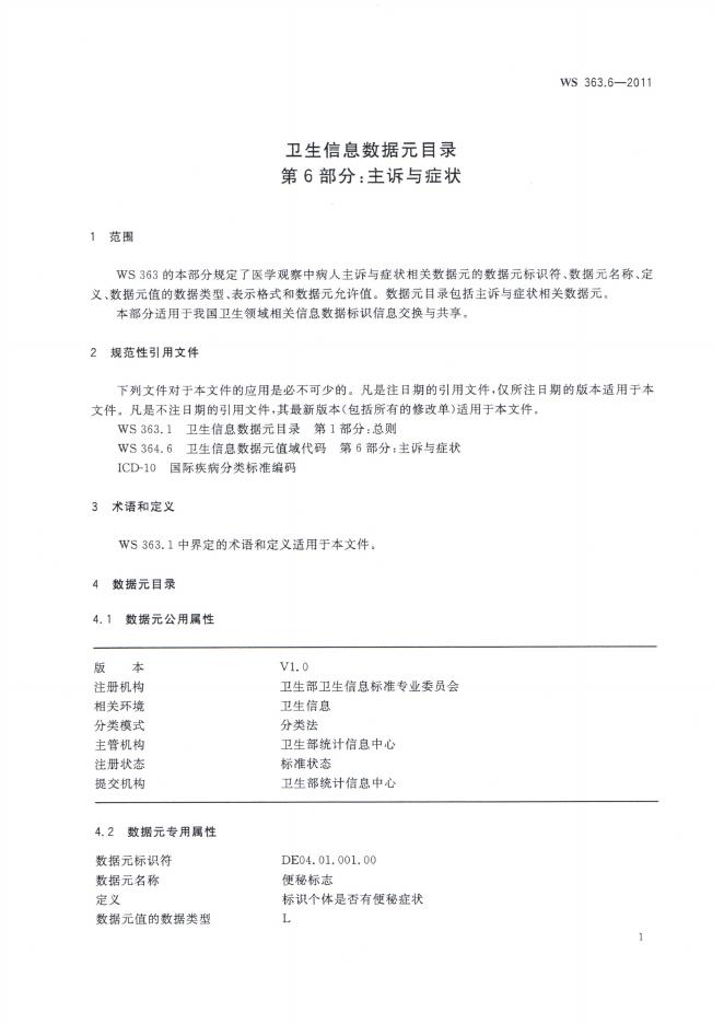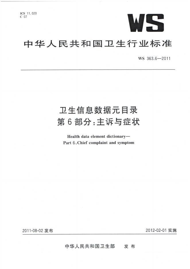 WS 363.6-2011 卫生信息数据元目录 第6部分:主诉与症状