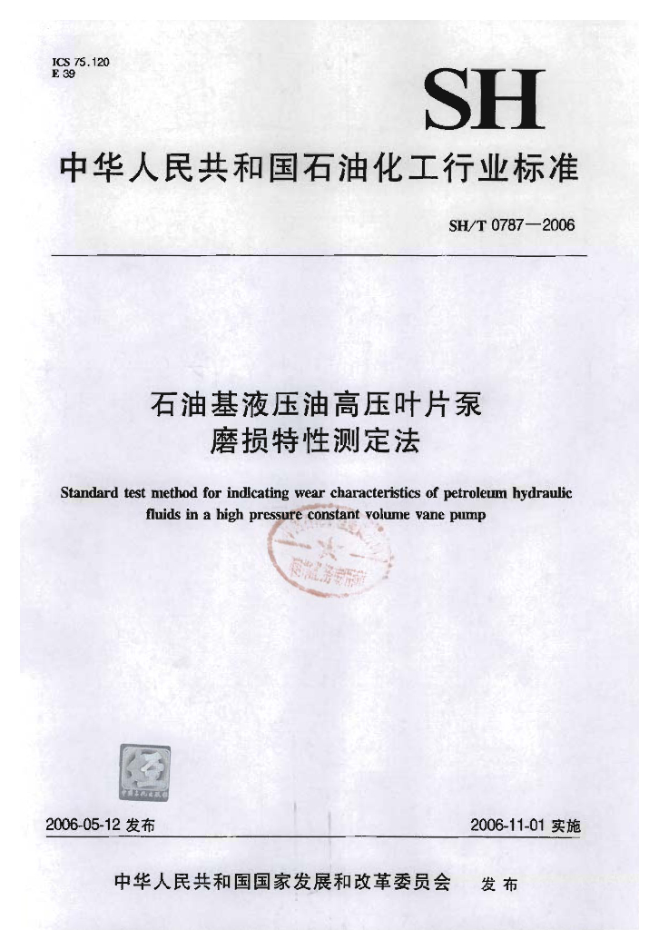 SH/T 0787-2006 石油基液压油高压叶片泵磨损特性测定法