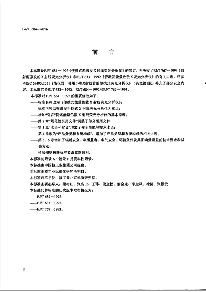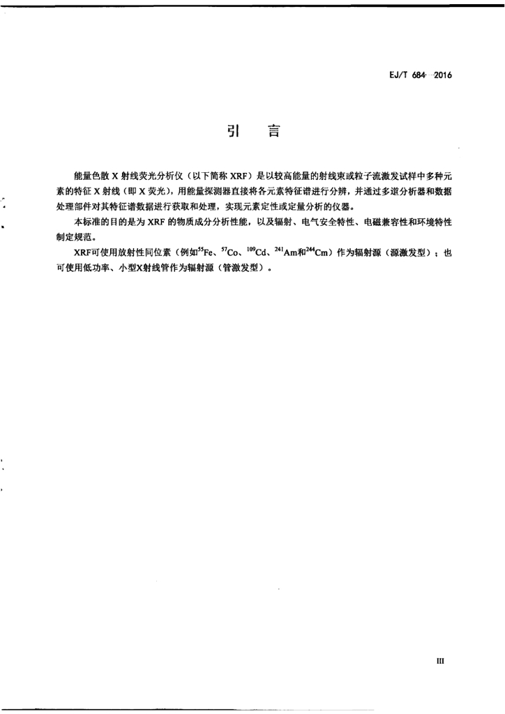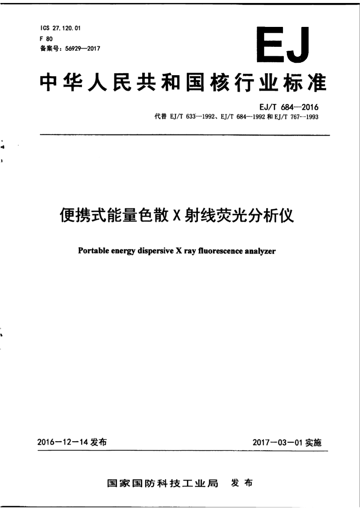 EJ/T 684-2016 便携式能量色散X射线荧光分析仪