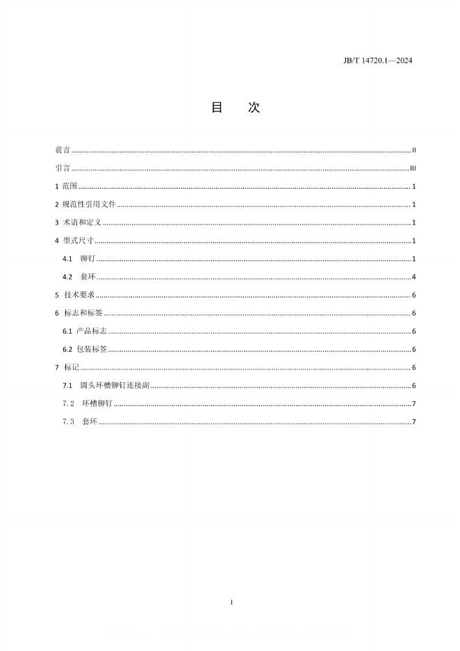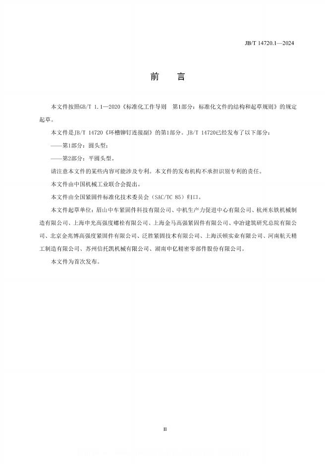 JB/T 14720.1-2024 环槽铆钉连接副 第1部分:圆头型
