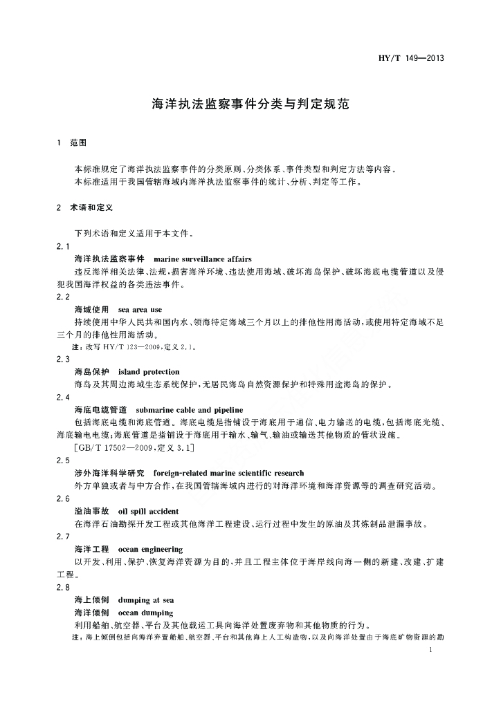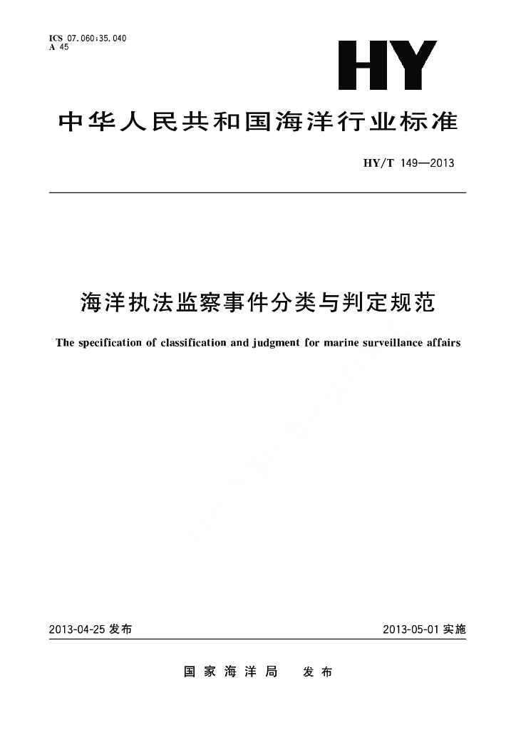 HY/T 149-2013 海洋执法监察事件分类与判定规范