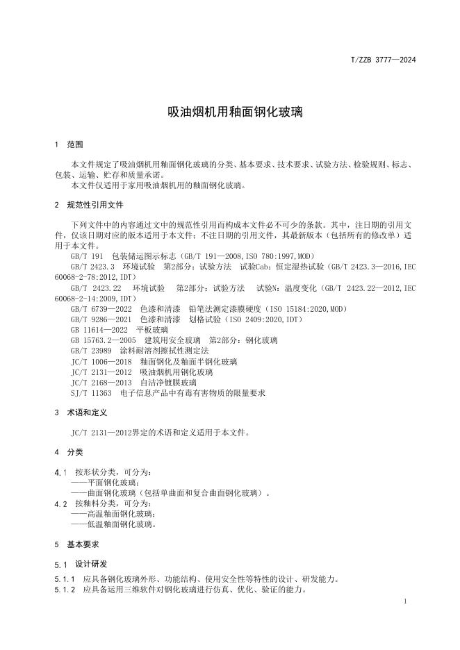T/ZZB 3777-2024 吸油烟机用釉面钢化玻璃