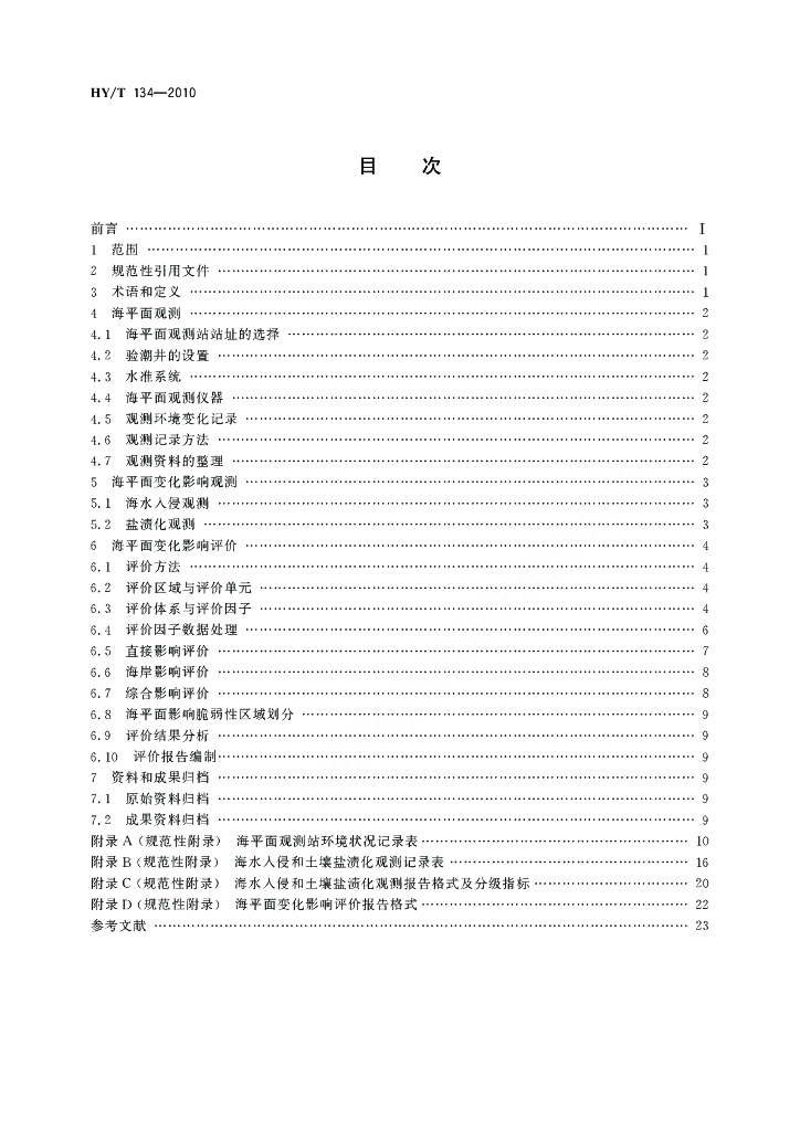 HY/T 134-2010 海平面观测与影响评价