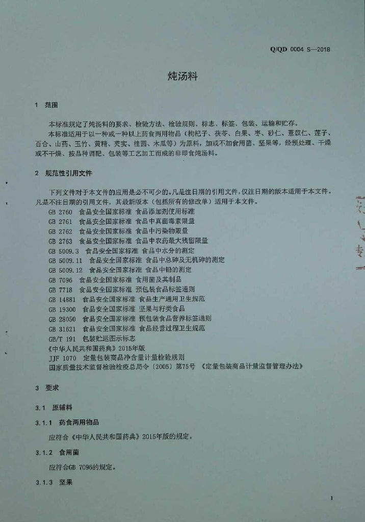 Q/QD 0004S-2018 炖汤料