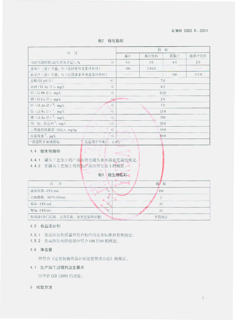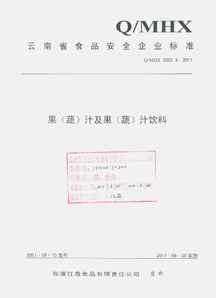 Q/MHX 0002S-2011 果(蔬)汁及果(蔬)汁饮料
