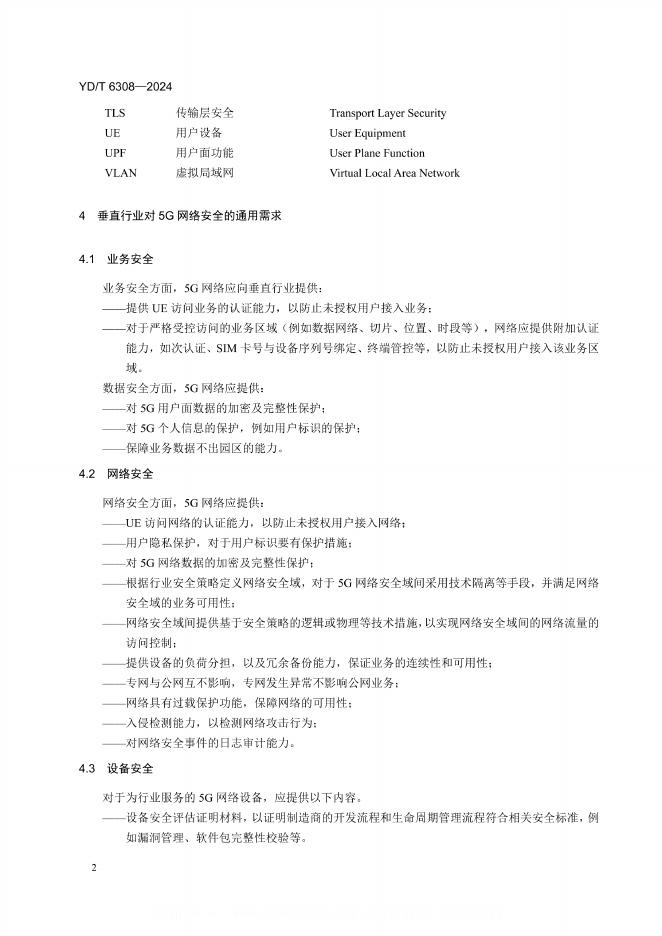 YD/T 6308-2024 面向行业的5G网络通用安全能力技术要求